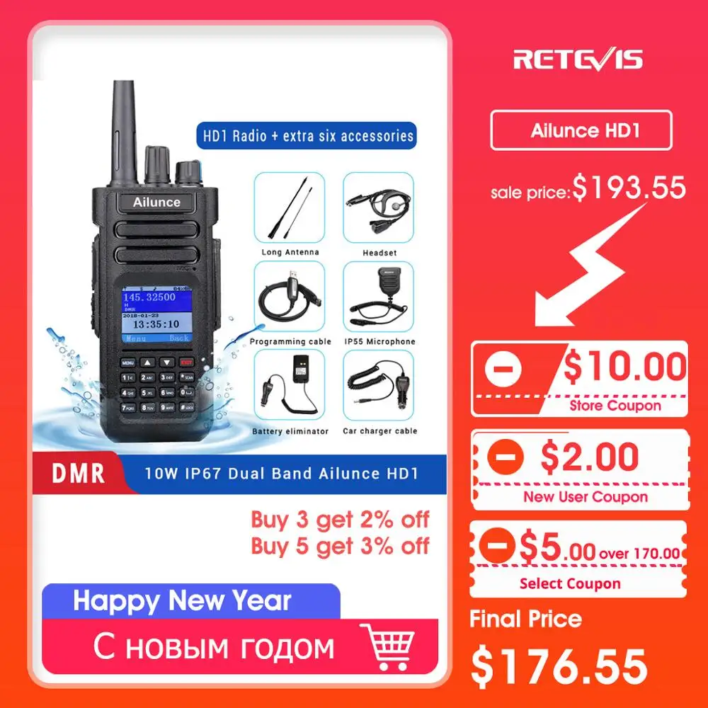BEST DMR Radio Digital Walkie-talkie RETEVIS Ailunce HD1 GPS Ham Radio VHF UHF DMR IP67 Waterproof Handy