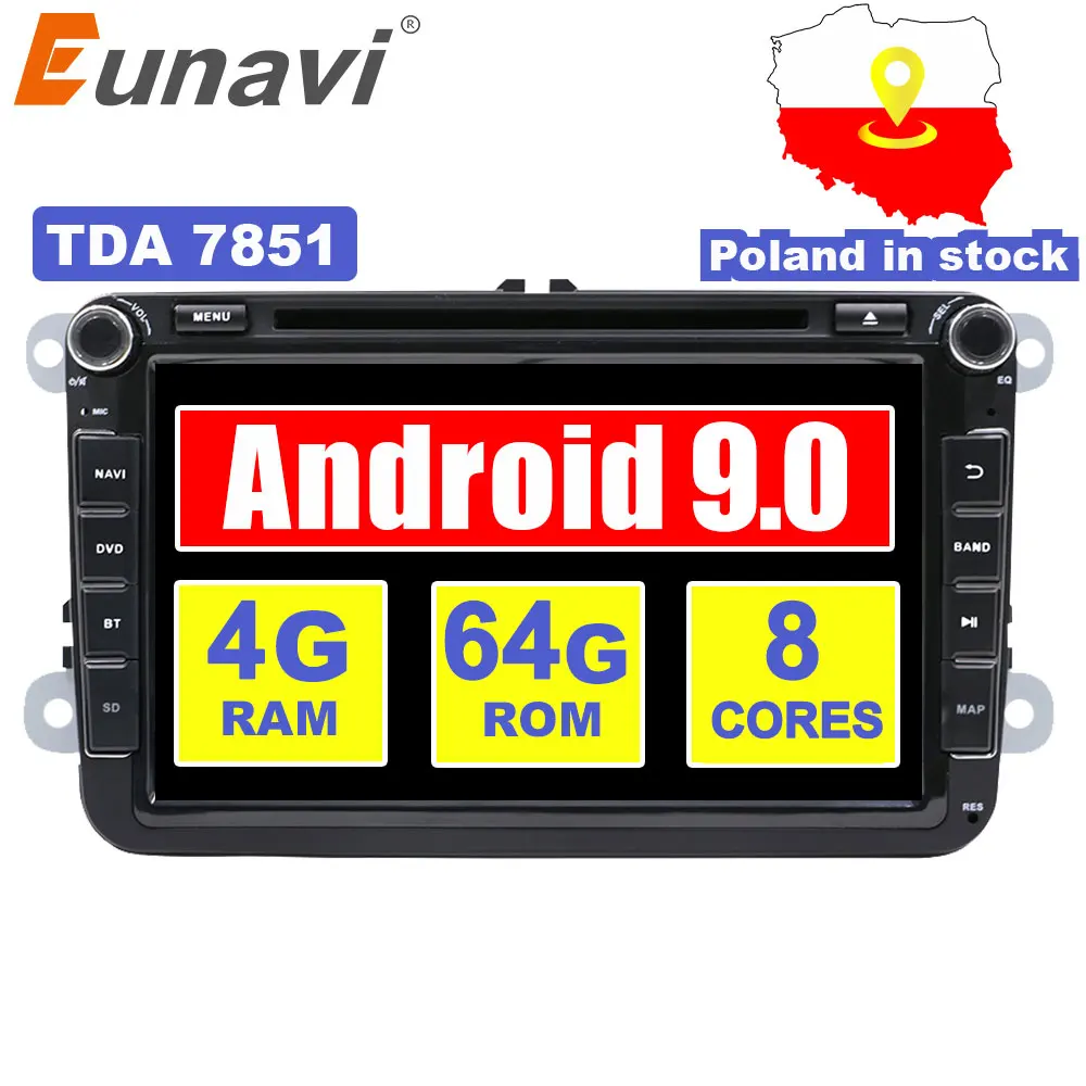 Eunavi 2 Din Android 9 car dvd radio player gps for Volkswagen VW Polo Jetta Tiguan passat b6 cc fa