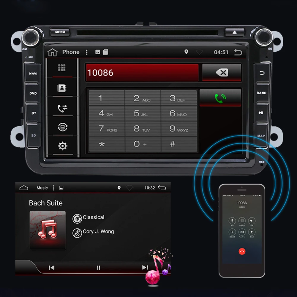 TOP Eunavi 2 Din Android 9 car dvd radio player gps for Volkswagen VW Polo Jetta Tiguan passat b6 cc fa