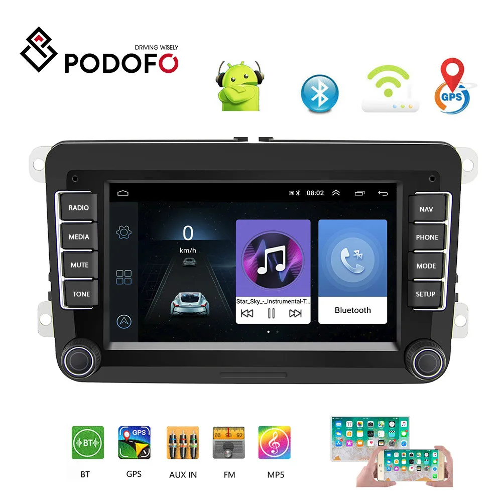 Podofo 2 din Car Radio 7" VW Car MP5 Multimedia Player Android GPS Navigation Autoradio ISO /Androi